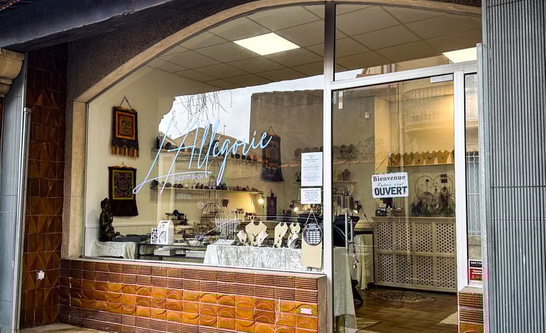 La boutique l'Allégorie Concept Shop est un show room proposant un grand choix de minéraux avec des pièces uniques, des encens, des outils énergétiques et des créations artisanales personnalisées et originales de bijoux en pierres fines.